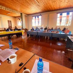 Die neue Woche beginnt mit der Frühbesprechung. Oberärzte und Fachärzte wollen auf den neuesten Stand gebracht werden. Die Interns (Medizinstudierende im Praktischen Jahr) sind die Hausherren am Wochenende (leider sind es nur Männer). Sie sind auf sich allein gestellt. Lediglich telefonisch können sie ihre Mentoren erreichen. Die Oberärzte und Chefärzte sind bei ihren Familien, meist viele Stunden Fahrt von Litembo entfernt. Montags morgens werden dann die Fälle der Abteilungen nochmals vorgestellt und auch die Therapieansätze besprochen und diskutiert. Diese Form der Patientenvorstellung durch die Interns und die damit verbundenen kritischen Fragen der Fachärzte zu theoretischem Wissen sollen die Interns auf ihre abschließende praktische Prüfung vorbereiten. Die Fallvorstellungen sind auf Englisch, und ich folge den Ausführungen immer sehr aufmerksam. Ein bisschen teste ich mich dann auch selbst, ob ich wüsste, was man zu tun hätte oder wenigstens eine Ahnung. Mir fehlt aber definitiv noch viel praktische Erfahrung. Immerhin weiß ich bei den theoretischen Fragen auch ungefähr Bescheid. Gut, dass ich hier nur Gast bin. Die Interns, die vorne an einem langen Tisch sitzen, mit Blick auf die Stuhlreihen, in denen wir sitzen, kommen ganz schön ins Schwitzen. Aber sie schlagen sich alle ziemlich gut. Die kritischsten Fragen stellt überraschenderweise immer der Augenarzt des Hauses. Ganz schön fordernd für einen Mann, der sich nur mit einem einzigen Organ des Körpers den ganzen Tag beschäftigt. Meine Abneigung zur Augenheilkunde wird mal wieder deutlich. Auch dafür ist eine Famulatur wichtig – zu wissen, was man später nicht machen will und vor allem, wie man nicht werden will.