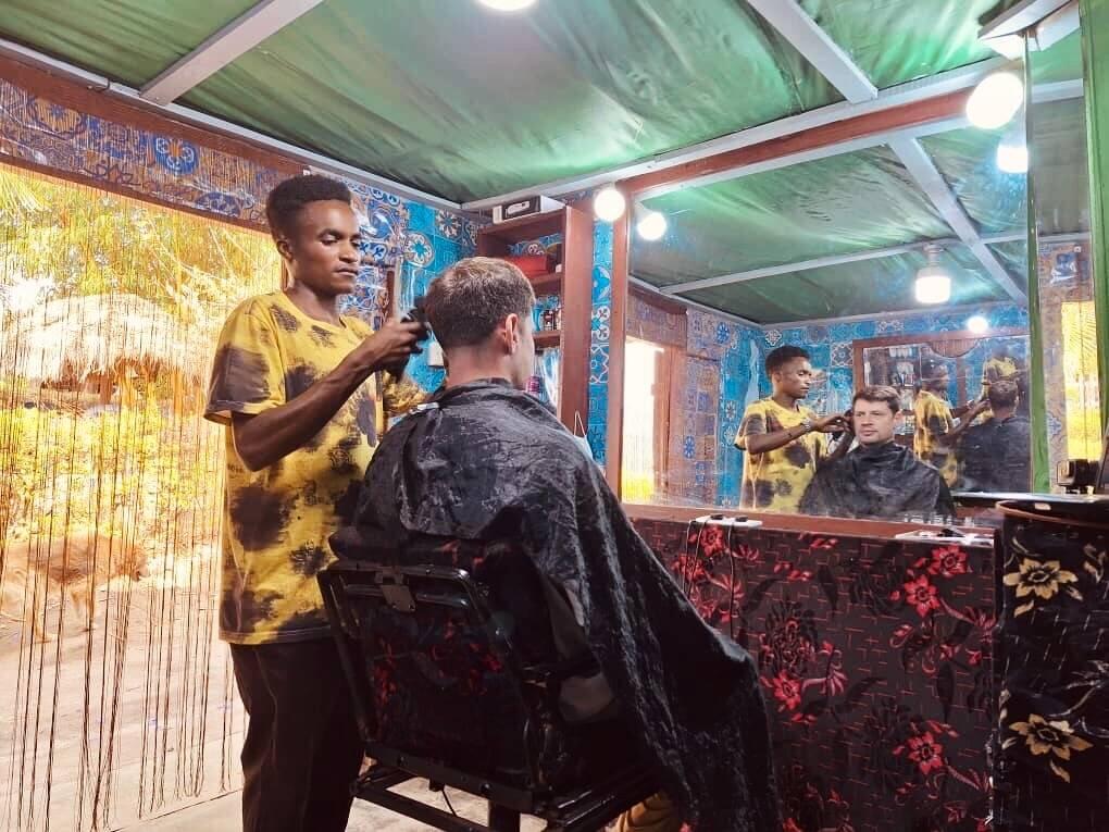 Traveler😂 so ein einmaliges Erlebnis hatte Daniel in Kenia auch mal. Der Frisör schien sichtlich Freude daran zu haben, diese ungewohnt weichen Haare zu ‚bearbeiten‘ und hat bestimmt eine Stunde geschnitten, drüber gestrichen, wieder ein bisschen geschnitten, wieder drüber gestrichen usw. 😅