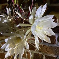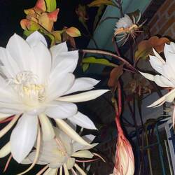 Dann noch etwas ganz Besonderes: Eine Pflanze vor dem Haus blüht. Es ist die „Königin der Nacht“, die nur einmal im Jahr blüht. Das kann kein Zufall sein. Die Blüte der „Königin der Nacht“ geht gegen 22 Uhr auf, um rund 0 Uhr ist sie voll aufgegangen und verwelkt bis zum Morgen. Sie sieht ein einziges Mal das Licht der Welt und verwelkt...