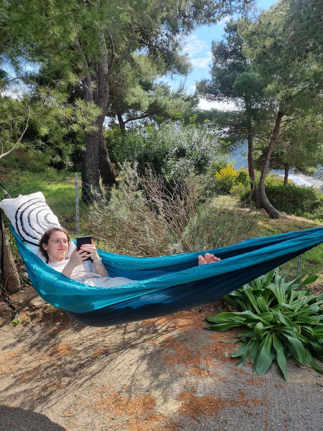 Da Salome immer noch ihre Erkältung plagt werden wir den Nachmittag gemütlich in der Hängematte ausklingen lassen📖🌞