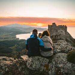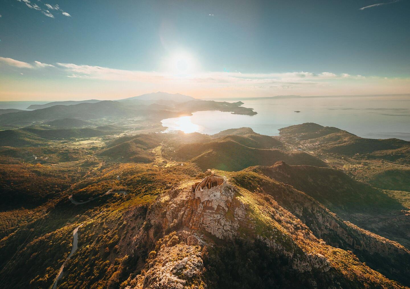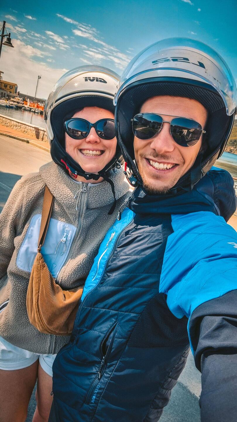 Mit unserem Roller cruisen wir Richtung der wunderschön gelegenen Burgruine Volterraio🏰 Über felsige Wege gings bis nach oben wo wir einen Kletterguide aus Mailand trafen - mit Händen unsRead more