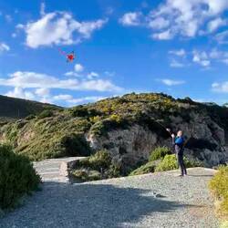 Haben uns in der Stadt einen kleinen Drachen gekauft und diesen im Sonnenuntergang steigen lassen - was ein Spass🥳
