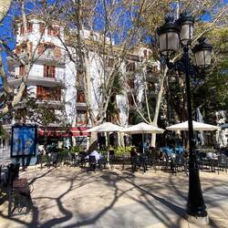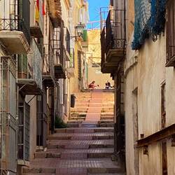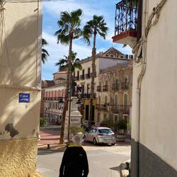 Sonntag in Lorca, Nix los, die Geschäfte sind geschlossen. Aber in bzw eher vor einigen Cafés und Restaurants sitzen die Menschen und genießen die Sonne. Ein warmer Wind weht durch die Gassen. VomLäs mer