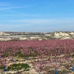 Rund um Cieza soll es die meisten Mandelbäume geben und die sollen um diese Zeit noch blühen. Wir bejubeln jeden blühenden Baum auf dem Weg von Lorca dorthin (also ich jubele). Auch wenn dieLäs mer