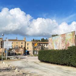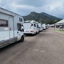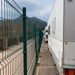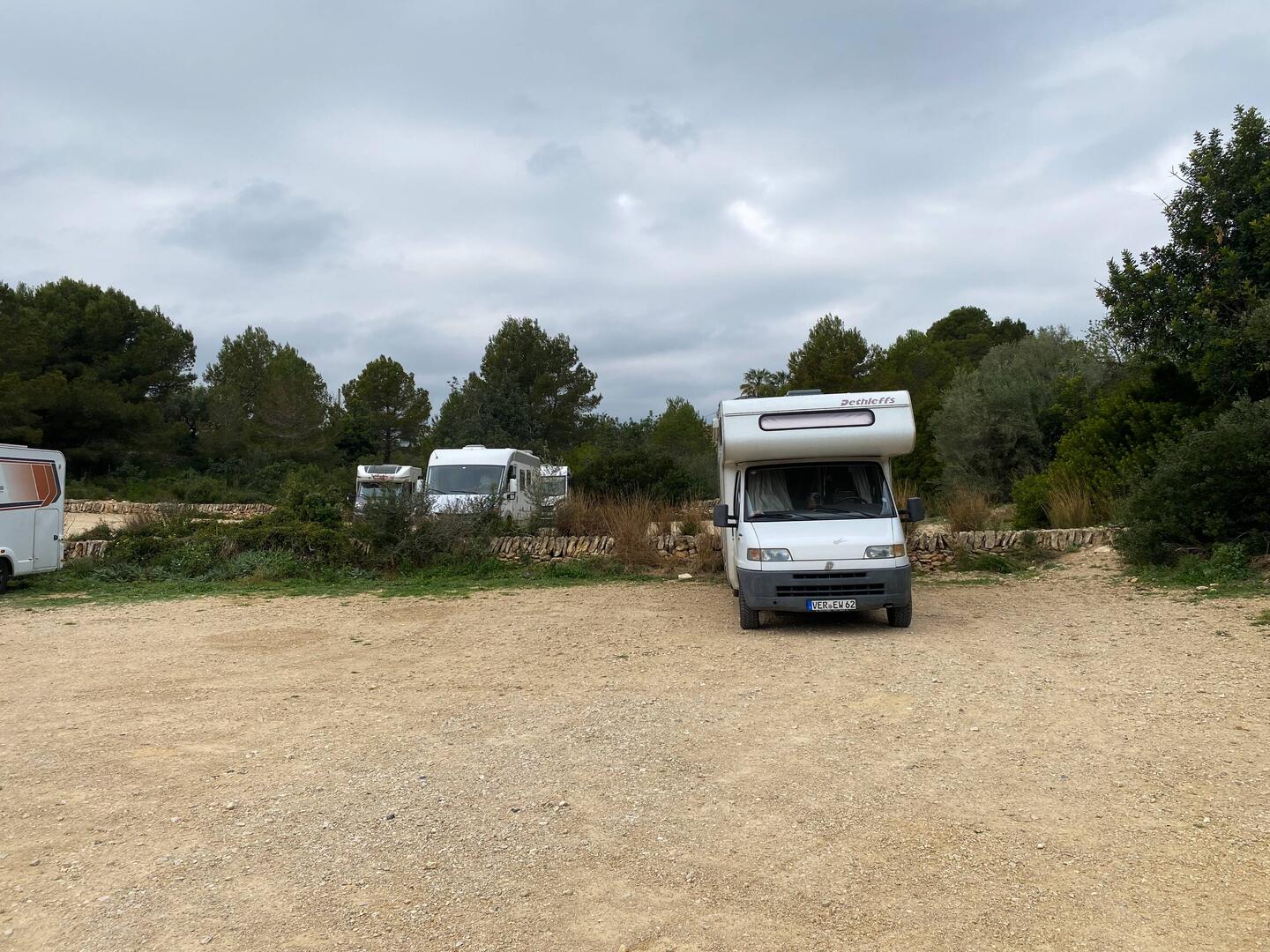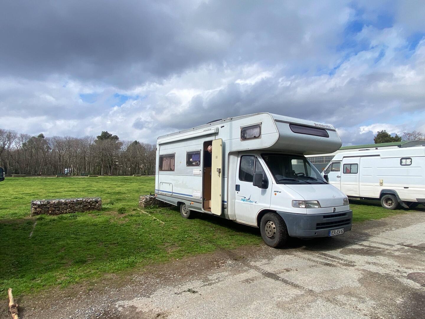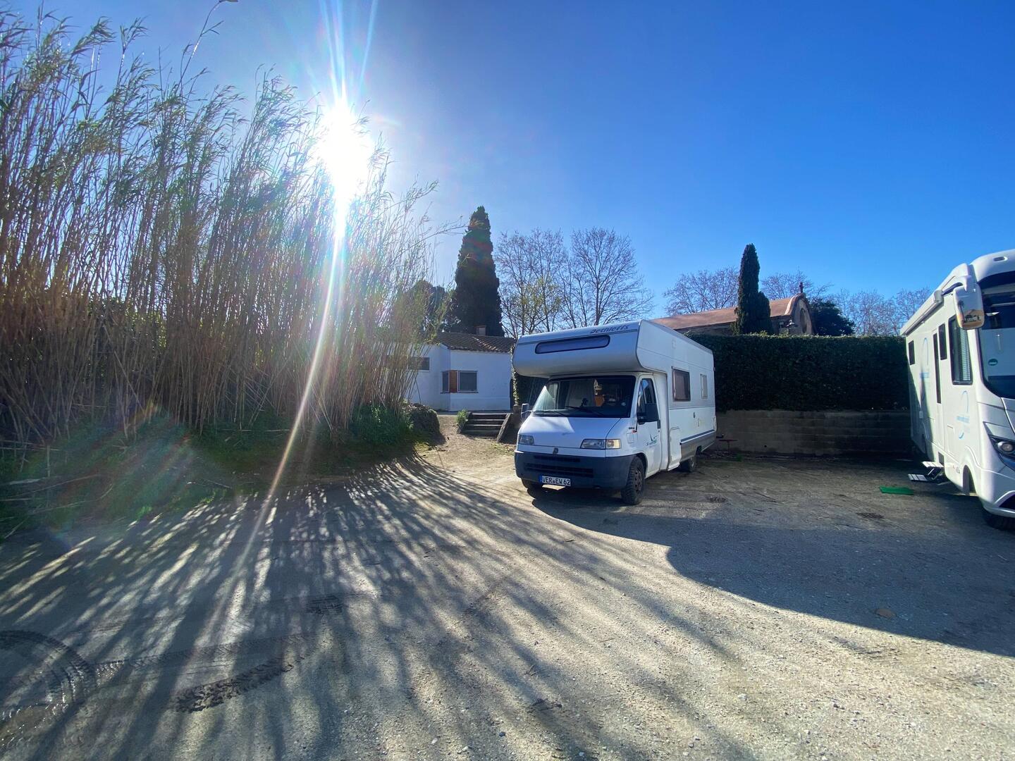 Unsere erste Station in Espagna ist auch unsere letzte: Peralada. Wieder gut voll der Stellplatz. Vor uns parkt ein großes Wohnmobil ein und ich nutze die Gelegenheit, um direkt dahinter denLäs mer