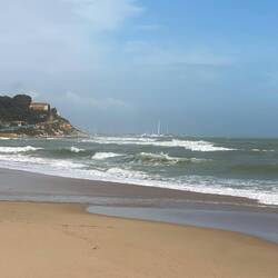 Die Sonne lässt sich blicken, verführt mich zu einem zweiten Spaziergang. Das Rauschen der Wellen ruft mich, man kann es sogar im Wohnmobil hören. Ich kann nicht widerstehen.