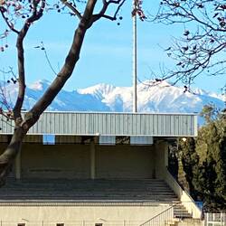 Schneebedeckte Berggipfel, hier unten weht ein kräftiger Wind. Wenn auch nicht mehr so eisig wie noch an der Rhone. Freitag ist Markt in Elne. Viel Obst und Gemüse, Hausschuhe, Kleidung undLæs mere