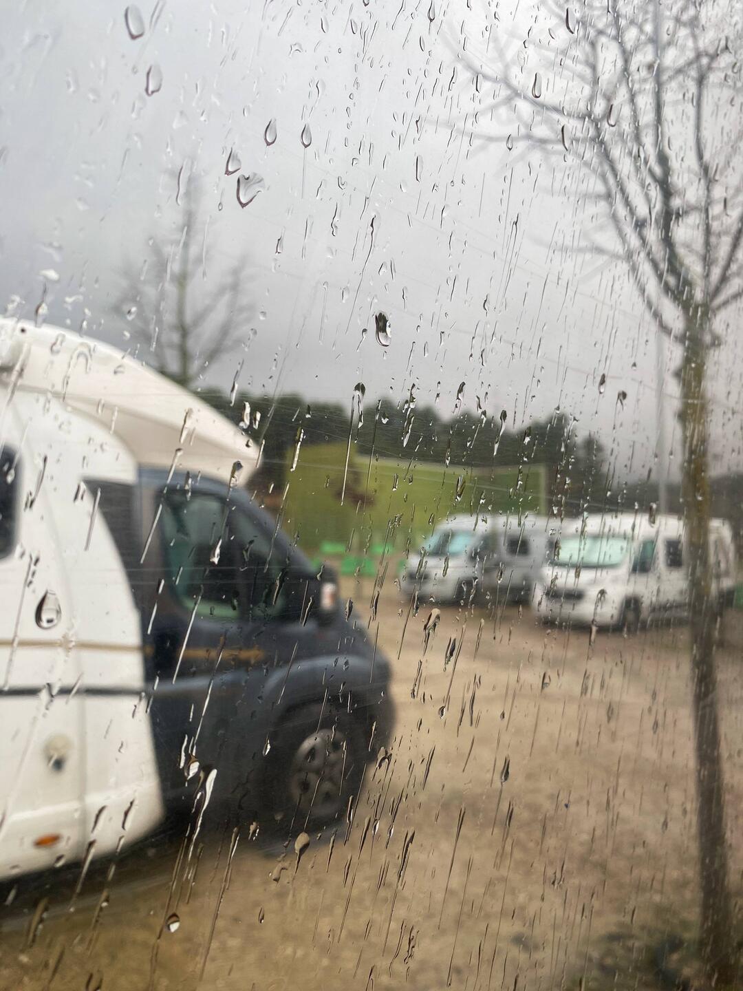 Das Hörbuch versucht auf voller Lautstärke gegen den prasselnden Regen zu mir durchzudringen. Mal mehr, mal weniger stark pladdert es aufs Dach. Viele Wohnmobile sind weiter gezogen, ob das hilft?Læs mere