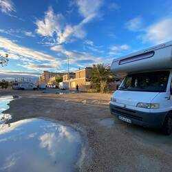 Argwöhnisch fahren wir auf den Platz am Meer der Area 340. alle Camper stehen links, hat das einen Grund? Wir zögern, fragen erstmal nach. Nein, die „rechten“ sind nur irgendwie alle abgereist.Læs mere