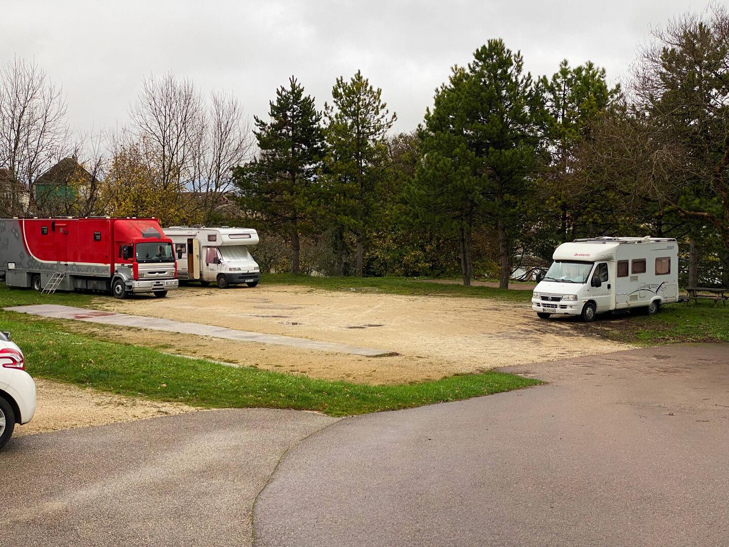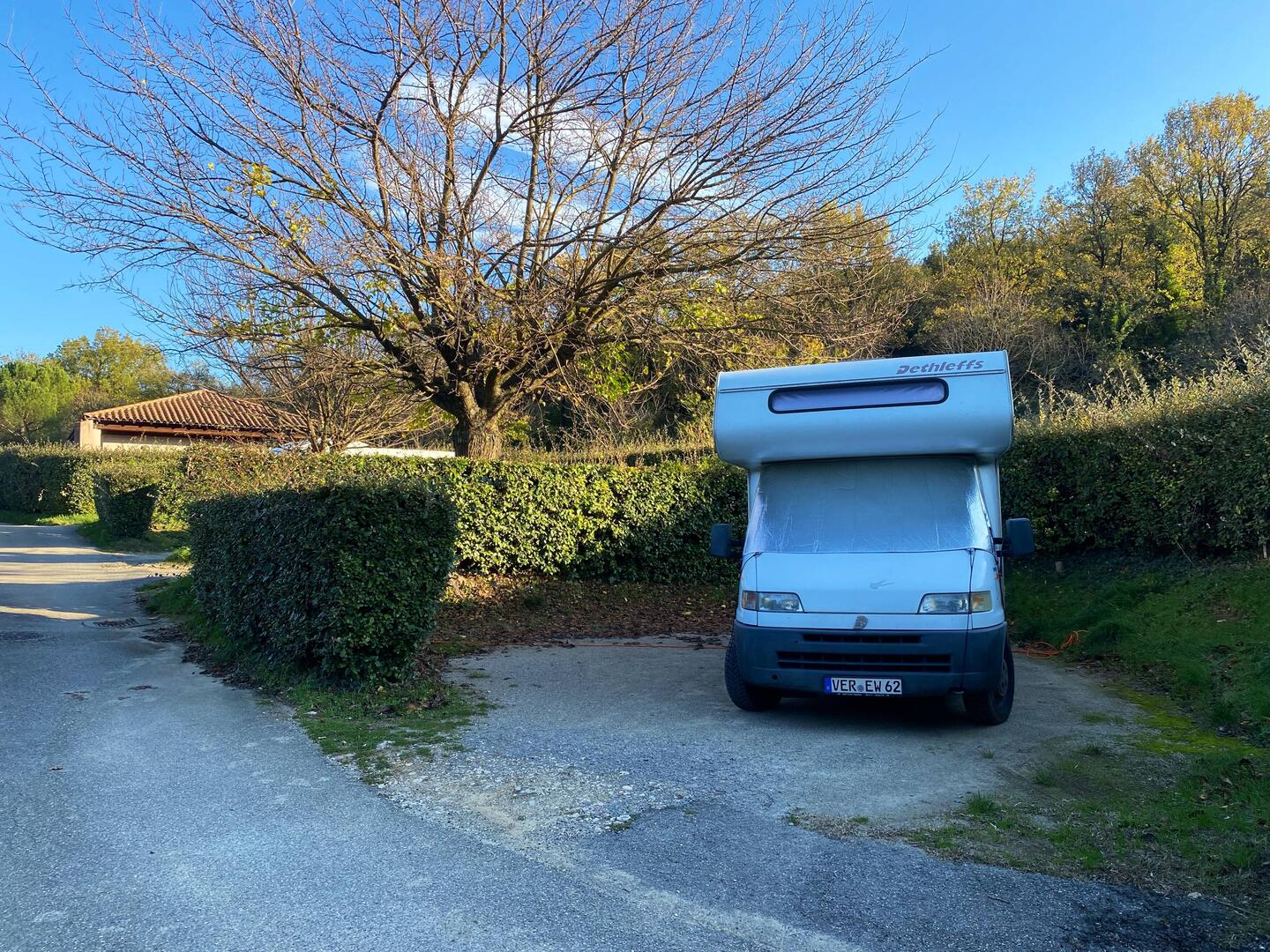 Eine ruhige, extrem dunkle Nacht verbringen wir in Viviers. Keine Geräusche, kein Wind. Wäre es ein lauer Sommerabend - der Platz wäre perfekt zum Sterne gucken. Mit uns stehen noch 5 andereLeia mais