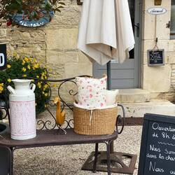 Rundgang durch den kleinen Ort an der Rhone. Der liegt gut geschützt durch einen breiten Deich und eine hohe Mauer in der Sonne. An die Korbmacherei erinnern nur noch kleine Flechtarbeiten an denLeia mais