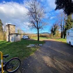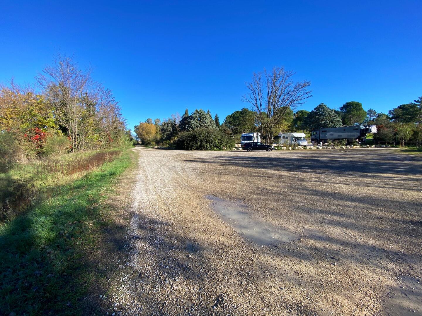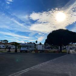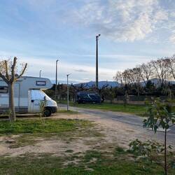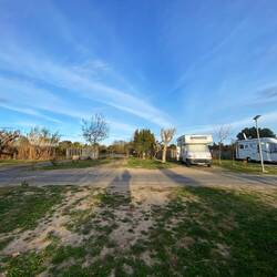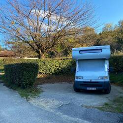 Ein schmaler, geteerter Weg führt durch Weinreben. Wir folgen dem Hinweisschild „Wohnmobil Stellplatz“ und enden auf dem Gelände des Moto Cross Clubs. Hier steht man rustikal, mit Strom fürLeia mais