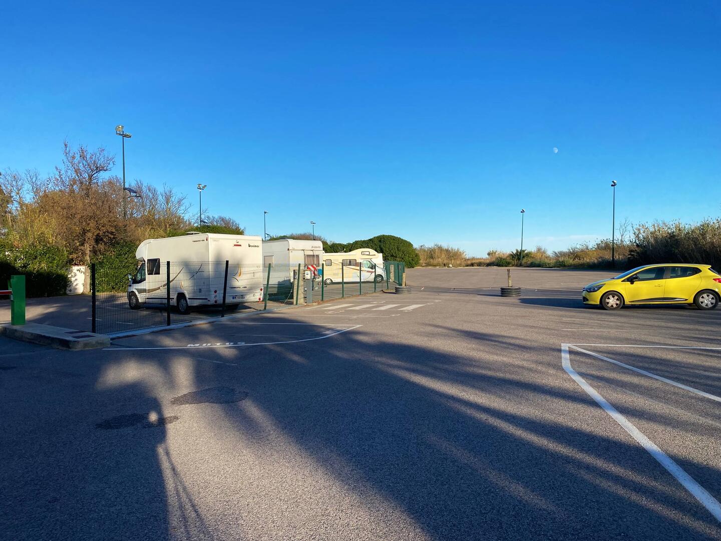 Über Nacht stehen wir auf einem CCP Platz. Mit der Karte wedeln, Schranke hebt sich, Platz suchen, Stromkabel einstecken. Unkompliziert. Der schönste Platz ist es nicht, aber nur wenige Minuten vonLeia mais