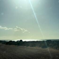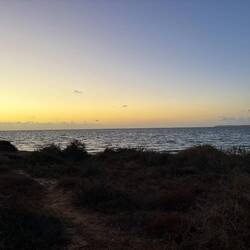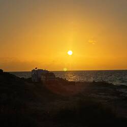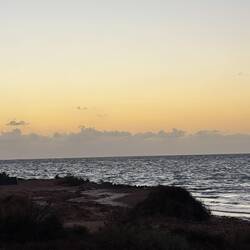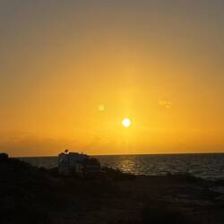 Wir sitzen am Whalebone Campground circa 10 Meter vom Meer entfernt. Es ist windig und wir warten auf den Sonnenuntergang.