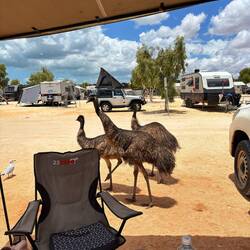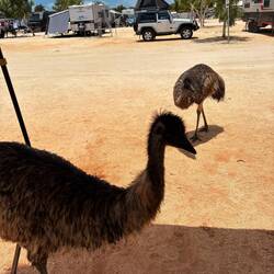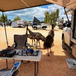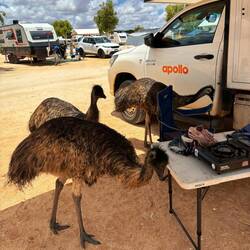 sich die Emus unseren Camper gemerkt und kamen noch mehrmals um die Ecke um zu schauen, ob sie nicht noch was abstauben können 😬😱😂Baca lagi