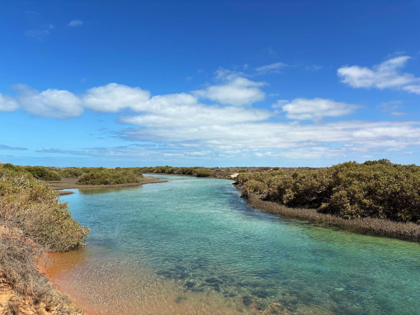 Leider haben wir Monkey Mia und Shark Bay heute schon wieder verlassen und sind die Halbinsel mit einigen Zwischenstopps zurückgefahren. Den 1. Stopp haben wir am Little Lagoon Creek gemacht, einemLæs mere