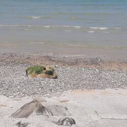 Toch is het onvoorstelbaar hoe snel de vloed opzet. We eten een stokbroodje. Na onze lunch is het zandstrand een stuk minder breed.