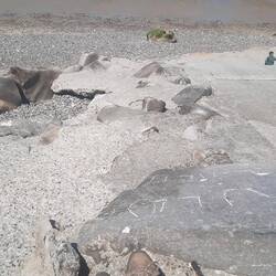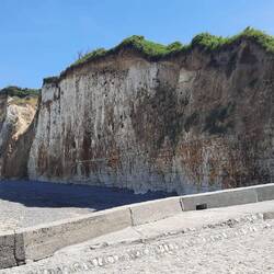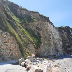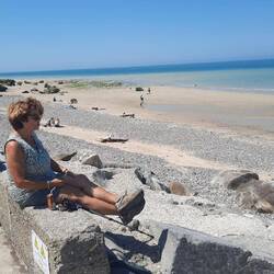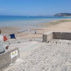 En wat we bij Pourville al zagen.....een smal kiezelstrand en zowaar een best brede zandstrook. Het is nog steeds een beetje eb, alweer later dan gisteren.