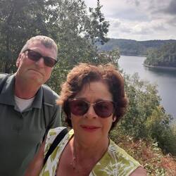 Tijd voor een picknick en koffie op een leuk plekje met uitzicht vanwaar we zo onze tweede korte wandeling gaan maken naar het uitzicht op het stuwmeer en de dam.
