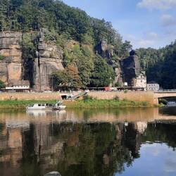 Met de auto rijden we in 20 min naar Bad Schandau om het zuidelijkste Duitse stukje te fietsen. Dan hebben we de Saschische Schweiz helemaalEn savoir plus