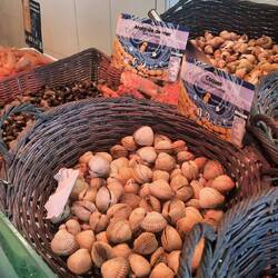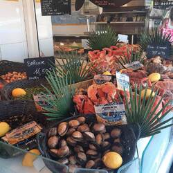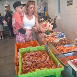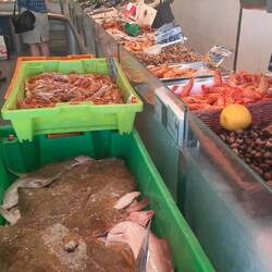 We slenteren door de smalle straatjes en komen uit bij de haven en visafslag. Altijd een lust voor het oog al die verse vis, schelp- en schaaldieren.