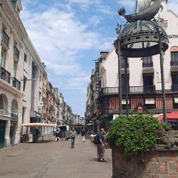 Na de markt struinen we door het kleine historische centrum. Geleidelijk aan klaart de lucht steeds meer op.