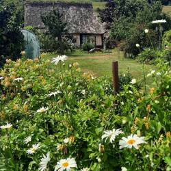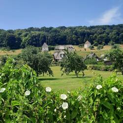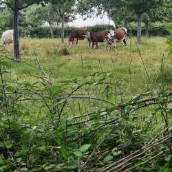Af en toe zien we het zonnetje en wat blauwe lucht. Het is een mooie gevarieerde wandeling met stijgen en dalen. Door holle paden ( glad dus vanwege de regen), door havervelden , gerst, vochtig bos met veel varens en mos en natuurlijk de Normandische boerderijen met appelboomgaarden. In de boomgaarden lopen ook vaak koeien. Twee vliegen in één klap zullen we maar denken.Weiterlesen
