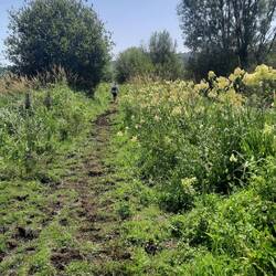 Af en toe best glad ook door de onweersbuien van eergisteren. Dus de stok gaat mee. Hoogteverschil 140 m stijgen en dalen.