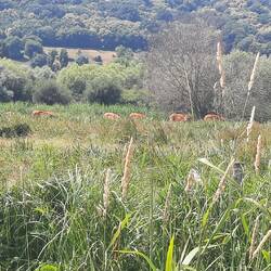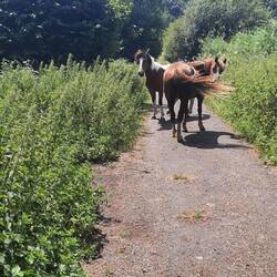 Er staan een drietal paarden op het pad die van geen wijken willen weten. We kunnen er niet omheen omdat het daar nu net wel lekker nat is en afgerasterd. We lopen een stukkie terug en de paarden volgen ons op een klein drafje. Niet fijn. In de verte komen er nog 2 wandelaars aan, daar wachten we even op. Ook zij zijn geen fan van loslopende paarden maar nu zijn we wel in de meerderheid. We lopen samen op en de paarden blijven voor ons lopen. Door in de handen te klappen kiezen ze op een gegeven moment er toch voor om het natuurgebied weer in te gaan. Gelukkig maar, ook weer gered!Weiterlesen