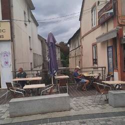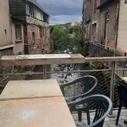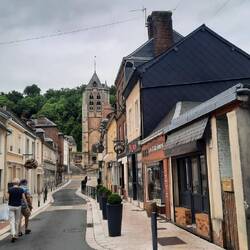 In Brionne lopen we ook even een rondje en drinken wat op een terrasje aan de Risle natuurlijk.