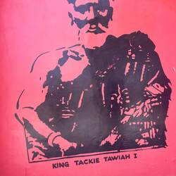 Der Tod und die Trauerfeier werden auf einem großen Plakat, das ein Foto von dem/rRead more