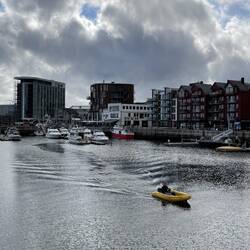 Nun fuhren wir 5 Minuten weiter bis an den Hafen. Hier parkierten wir und gingen zu Fuß Bodø entdecken. Zu unserer Freude rissen die (ich zitiere Simon:) „die dunkeln, grossen,“iggi“ „wääh“-Wolken auf und es kam die Sonne und der blaue Himmel hervor.