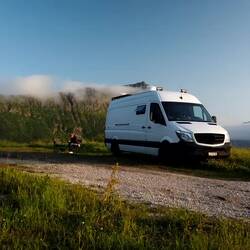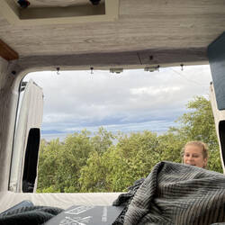 Zurück bei Gwendolin angekommen nutzten wir, die noch herrschende Sonne um unsere nassen Sachen auf der Motorhaube zu trockenen. Ebenfalls lüfteten wir in dieser Zeit Gwendolin wieder einmal richtig durch. Denn in den vergangenen Tagen hatte sich einiges an Feuchtigkeit im Van gesammelt.