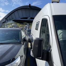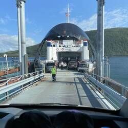 Bis anhin hatten wir bei den Fähren immer Glück gehabt. Die längste Wartezeit auf eine Fähre war ca 25 min. Heute konnten wir dieses Kapitel auch noch erweitern. Wir kamen an und sahen wie die letzten 2 Autos auf die voll gestopfte Fähre manövriert wurden.