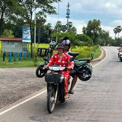 TravelerOh ja das ist schon bedrückend, wenn man solche Bilder vom Museum sieht! Aber das ist realer Geschichtsunterricht life erlebt! Was so alles auf ein Moped transportiert werden kann ist schon hohe Kunst für uns,aber für Asiaten der Alltag! Wie wir sehen seid ihr zwei auch schon super vertraut mit dem Zweirad!Liebe Grüße von Opi und mir!😀😃