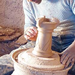 Er hat einen kleinen Ofen für uns getöpfert. Natürlich wurden wir auch hier zu Tee und Datteln eingeladen. Ich bin immer wieder über die warmherzige und freundliche Art der Menschen erstaunt.