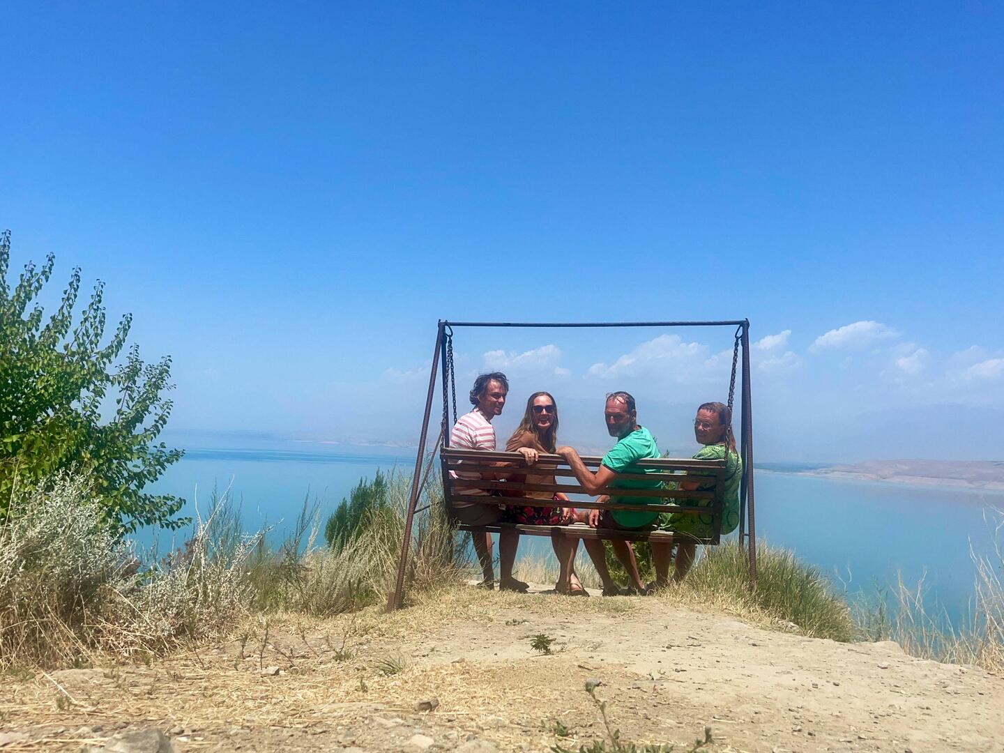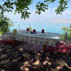 Zien we van alles en we drinken even koffie aan de rand van het Toktogul meer.