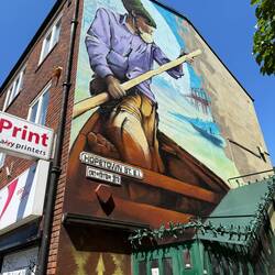 TravelerYou found one of the most iconic pieces of street art in Brick Lane — that giant heron is the work of ROA, a renowned Belgian street artist known for his large-scale black-and-white animal murals. About the piece: • 🖌️ Artist: ROA • 🕊️ Subject: A heron or crane-like bird, painted with his signature monochrome linework style. • 📍 Location: Hanbury Street, just off Brick Lane (you likely walked past it if you were exploring the curry houses or vintage markets). • 🎯 Context: ROA often paints local animals, and this bird is rumored to reference either urban wildlife or a nod to Bengali culture (many Bangladeshi restaurants nearby). It’s become a kind of landmark mural, untouched for years — which is rare in an area where most walls get repainted often.