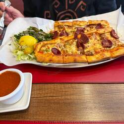 3. Sucuklu Pide – Spicy Turkish sausage (sucuk) and cheese.