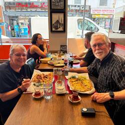 Getting a bit behind. This is actually Wed morning, so a brief recap from yesterday as last night I was too exhausted to do anything. Took the train to the hotel. A 15 minute stroll through London brought us to the hotel. Rooms were ready so we checked in. Kate , our director, was there to greet us and tell us what will be happening. An English woman from the south of England, she is a hoot. She’s been directing tours for some 25 years and has worked for many companies. Last 5 years she has been with Gate 1. Prior with AMA Waterways, Viking and others. So got to the room, dumped our stuff and then headed to Borough Market on the other side of the Thames. Got a nice view of Tower Bridge when we crossed over London Bridge. Wasn’t much longer than we were in Borough Market. That is a happening place for sure - every food vendor you could imagine. Crazy bad stuff for me but of course I love it, so had to try it. We spent about an hour or so there and then decided we were toast and headed back towards the hotel. We were going to go up to the top floor of this unique looking building to get the great view of London but they were having a special event so it was closed for the day. Hopefully we’ll get a 2nd chance. Got back to the room for the 6pm intro meeting with everyone. Turns out we have a pretty small group. 14 only. Hard to get an idea in just a few minutes what the vibe will be like. We shall see. Headed out afterwards for a 10 minute stroll to Hoops and Grapes, a pub we had read about. Cool place inside - we tried out their famous Meat and Fish pies. Decent - not spectacular. Then back to the hotel and crashed big time - unfortunately so tired, it was hard to sleep. Those flight screwups really messed with us. Hopefully Wednesday will be a better day! (I’ll try and caption these photos when I get the chance!)Read more
