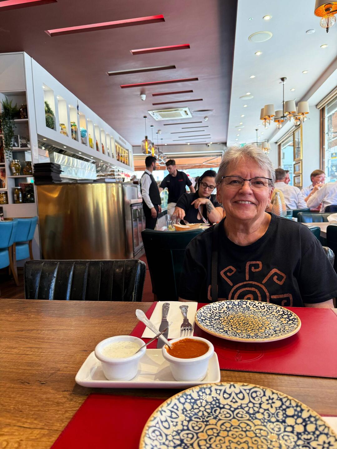 We ordered 2 varieties of Pide. Always like to try the ethnic places. Food was quite tasty - ate way too much and the flatbread wiped out my blood sugars but I figured all the walking would help (well eventually it did - :). . Waitress was kind enough to come over and volunteer to take our pics. We’re not much into selfies, but I guess this one counts. :)