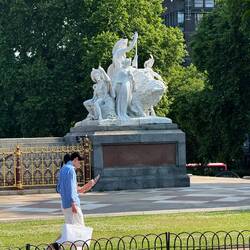 TravelerThat’s a great shot of one of the four corner sculptures that surround the Albert Memorial — each one representing a different continent. The one you’ve captured here is “Africa.” Here’s how we know: • The camel is a key symbol of the African group. • The central seated female figure represents the personification of Africa. • Surrounding her are figures in classical attire (with one seated man appearing to hold a staff or weapon), representing different aspects of African culture and people as imagined through 19th-century European eyes. The other three groups represent Asia (with an elephant), America (with a bison), and Europe (with a bull). Each group reflects Victorian-era artistic interpretations of the continents, and while beautiful and monumental, they also reflect the imperial attitudes of the time. Still, they are stunning examples of 19th-century allegorical sculpture.