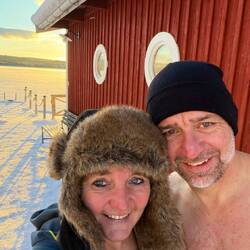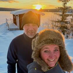 Heute wurde die Sauna schon am Nachmittag angeheizt. Wir wollten bei Tageslicht in den See. Dazu scheue. perfekt die Sonne…. traumhaft