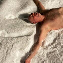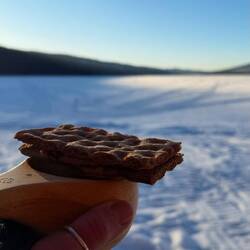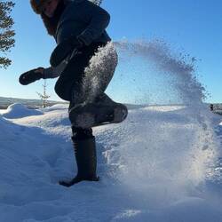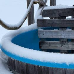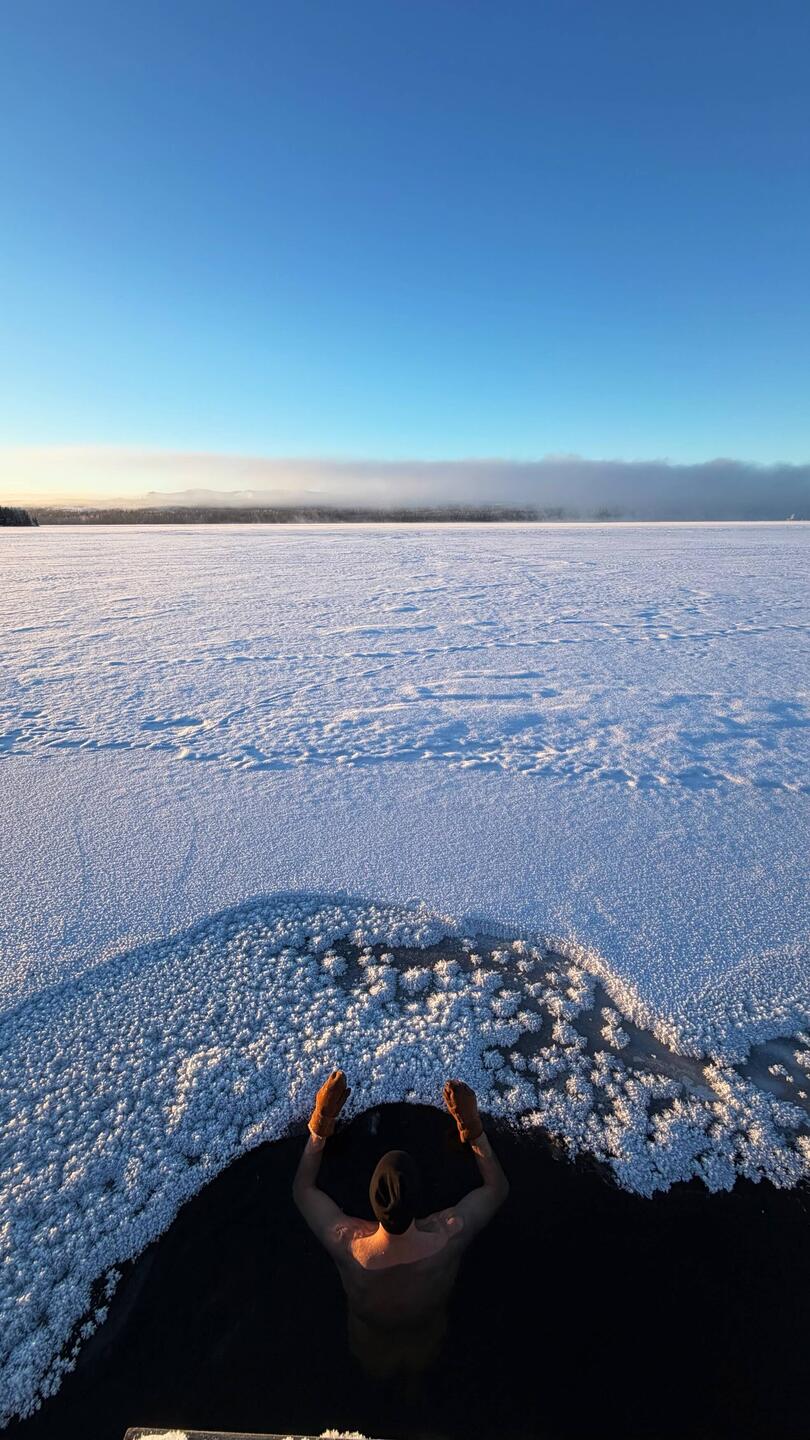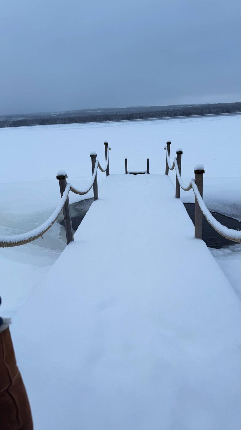 Hier schneit es fein aber stetig. Es ist e ht verrückt wie es schafft, das Eisbaden macht mit Sonne mehr Spaß, aber ehrlich gesagt der Pulverschnee hat auch etwas total wunderbares