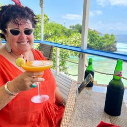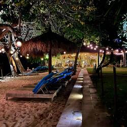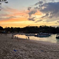 The main beach is a 15 min ride in the “taxi” ride away. There are no cars on the island but lots of little open backed trucks with bench seating. They have less suspension than Pj and Tim hadRead more