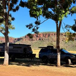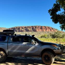 Got to the roadhouse at 1pm so P&T decided to go straight to see Neville the mechanic. 30k down the road. Got the four shock absorbers replaced. Back to camp by sunset. Photos of the Mount BarnetRead more