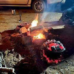One night or maybe more - depending on which solution we come up with to replace the shock absorbers on Pj and Tim’s van. Nice scones at the homestead today.