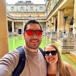 We took a tour of the Roman Baths, which is the namesake for this city. They have a natural spring that the Ancient Romans built a bath from in the year 47. They have been preserved and still stand toLeia mais