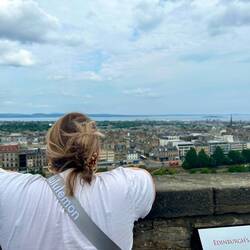 We got into Edinburgh today around lunch. Today is pride in Edinburgh so it was PACKED. We got out of the crowds by exploring the graveyards where JK Rowling was inspired for her names of many HarryLeia mais
