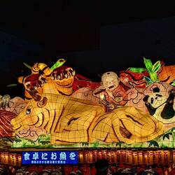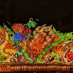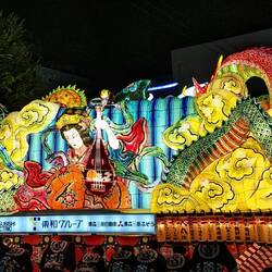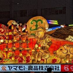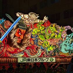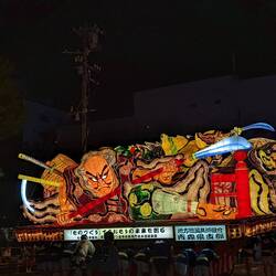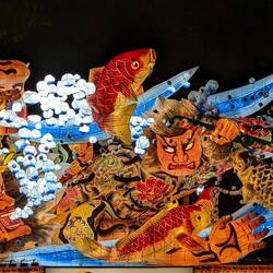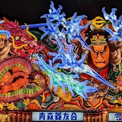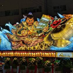 In this festival, huge floats are carried, on which structures made of wood and paper are displayed. These are the Nebuta. Lamps are placed inside to make the drawings stand out. But unlike in Hirosaki Matsuri where the Neputa are "flat" floats, Nebuta are more like 3D scenes with characters and creatures.